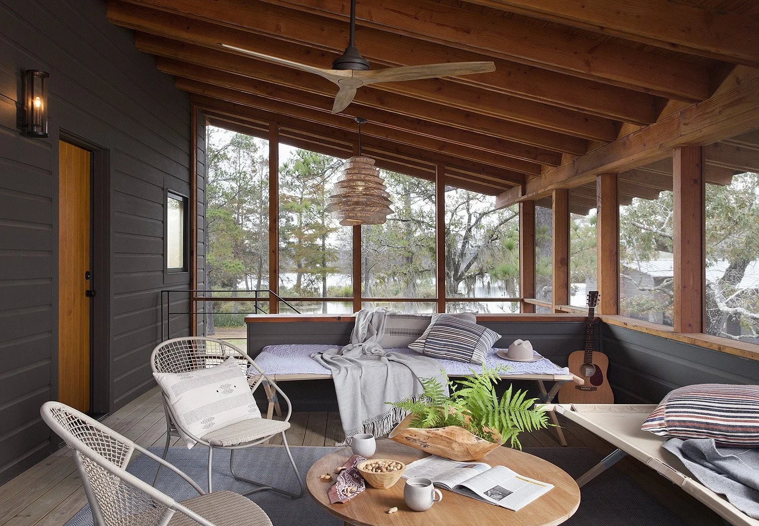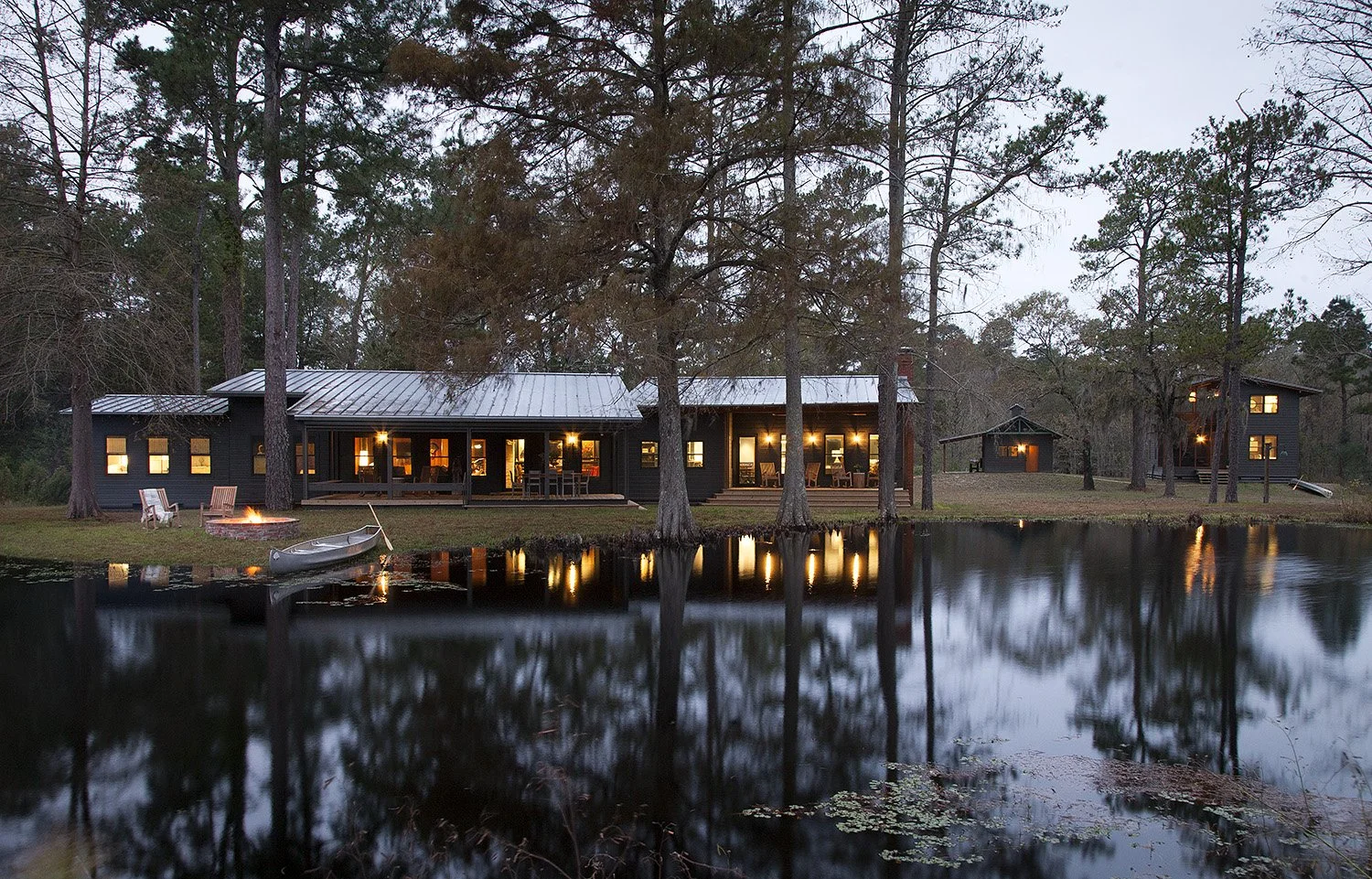 Located in the Neches River bottomlands of East Texas, Little Boggy Camp rests among cypress and loblolly pines on a 100-acre lake. Built in the 1940s, it has served as a four-generation family retreat for fishing and hunting. The owner—a philanthropist, cultural influencer, and conservationist—envisioned a sensitive renovation that honors its history while modernizing for a growing family. The expanded main house, guest house, and bunk spaces host up to 30, with additions like a master suite, vaulted game room, bar, library, and art display, all sited to capture lake and forest views.