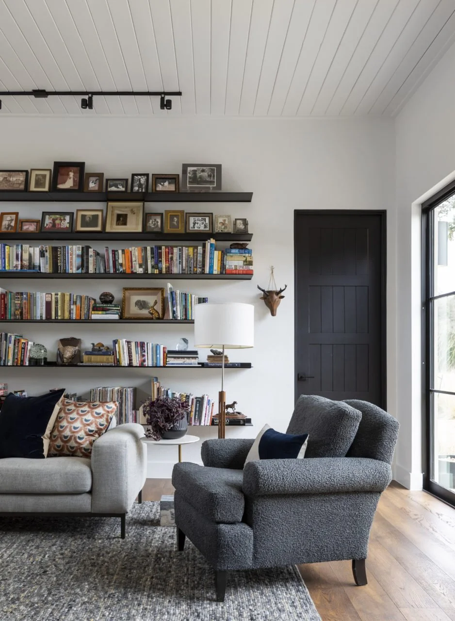 This new-build residence is a thoughtfully layered study in contrasts—dark and light, traditional and contemporary—designed for active, retired empty nesters who love to read, entertain, and pursue a wide range of hobbies. Engaged early in the design process, our team reviewed and refined architectural and finish selections, pivoting where needed to create a cohesive vision before moving into furnishings.
